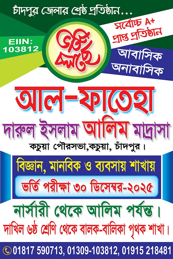 • আল- ফাতেহা দারুল ইসলাম আলিম মাদ্রাসা, কচুয়া ,চাঁদপুর।